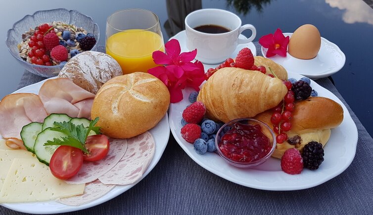 Kleine Gäste freuen sich über den großzügigen Kinderspielplatz. Ihr Urlaubstag bei uns beginnt mit einem reichhaltigen Frühstück mit hausgemachten Marmeladen und Mehlspeisen.