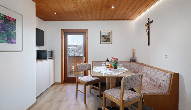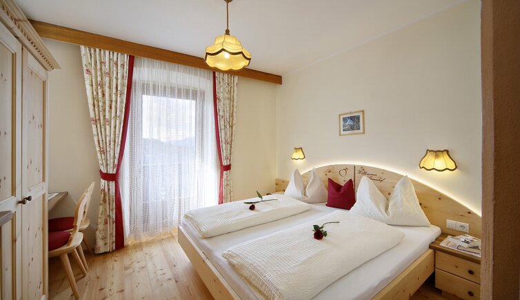 The rooms are newly furnished with fragrant, solid Swiss stone pine wood and have a balcony with view on the Tessa Group.