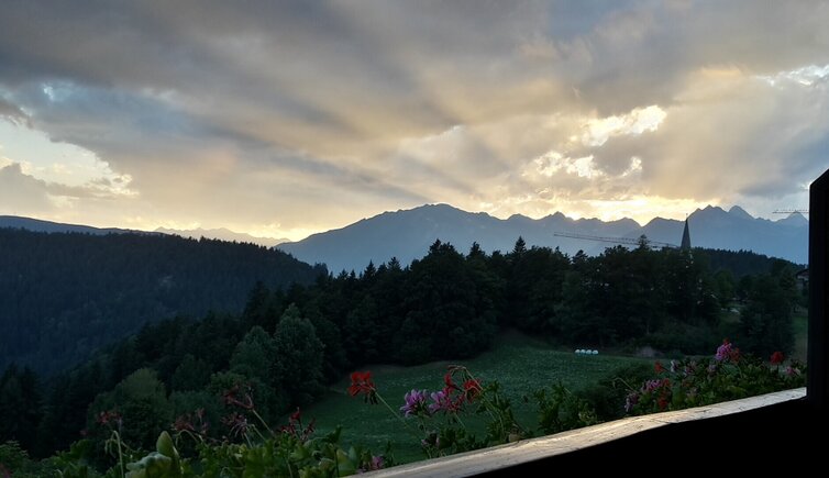 Our farm is situated in a quiet environment at 1.290 m a.s.l. on a high plateau above the Merano valley basin.