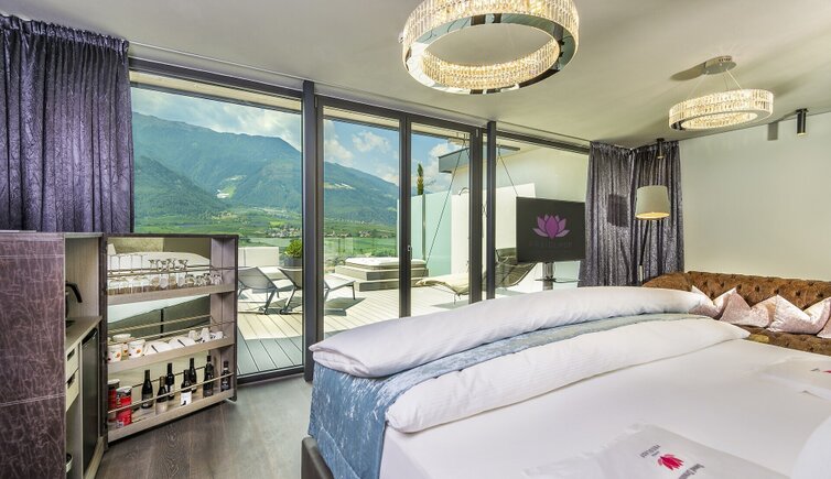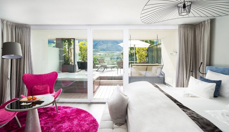 The in the midst of olive trees and vineyards located adults only spa hotel is a popular domicile for couples at romantic holidays in South Tyrol.