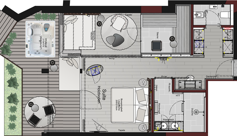 In the spacious wellness area with numerous saunas, steam bath, panoramic relaxation room, infinity sports pool, fitness room, etc. you can enjoy pure relaxation.