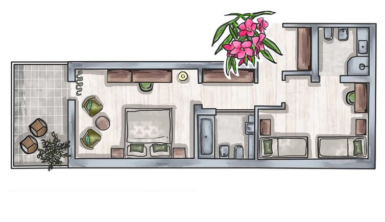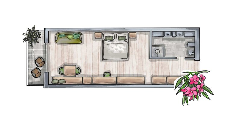 The cosy rooms and suites, bright, spacious and furnished with harmonious colours, invite you to dream and linger.
