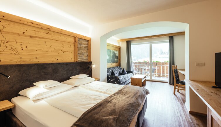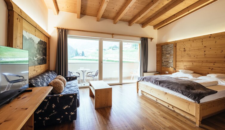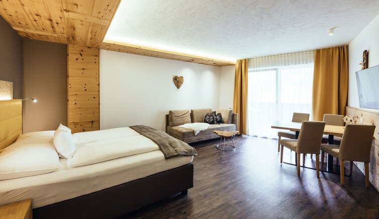 In addition, your room has a balcony with lounge chairs and seating, so you can enjoy the gorgeous view of the landscape and mountains of the Passiria Valley.