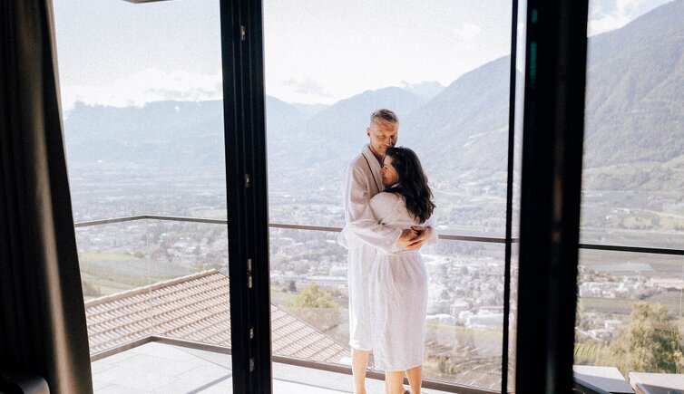 “Che bellezza” la vista su Merano e le montagne circostanti. Lussuose suite da sogno sopra i tetti di Merano.
