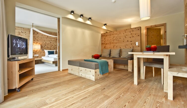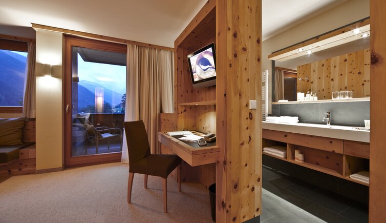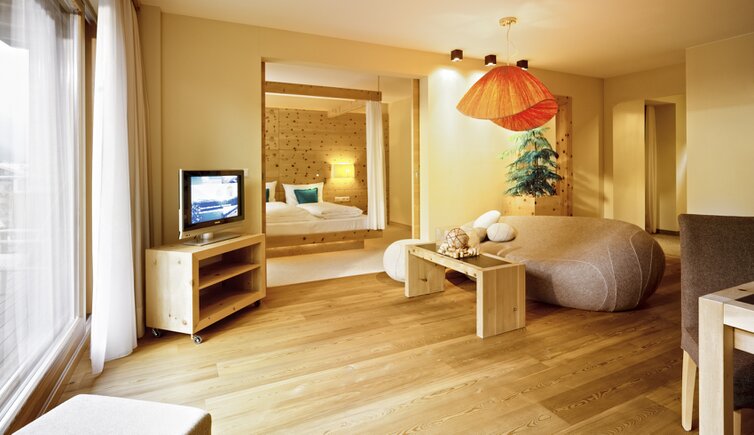 Le camere e le suites sono confortevoli e spaziose, arredate con grande attenzione ai dettagli, realizzate per la maggior parte in pino cembro, dall‘effetto curativo grazie ai suoi aromi naturali.